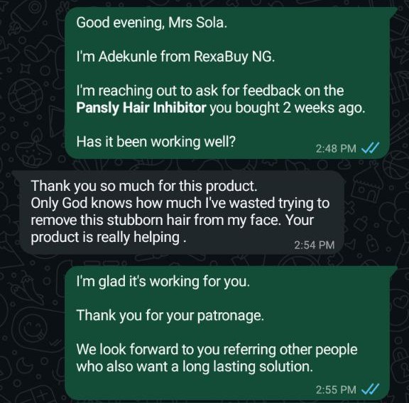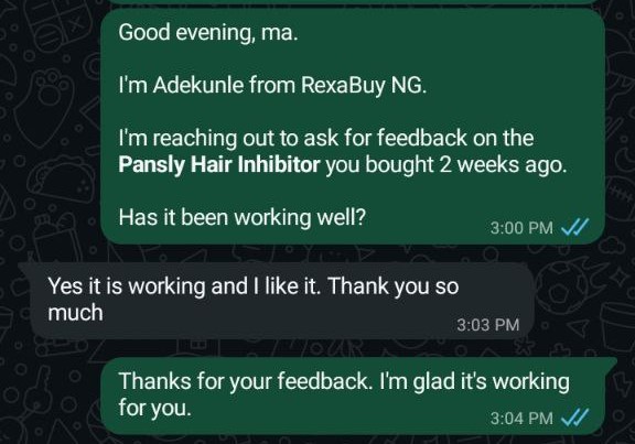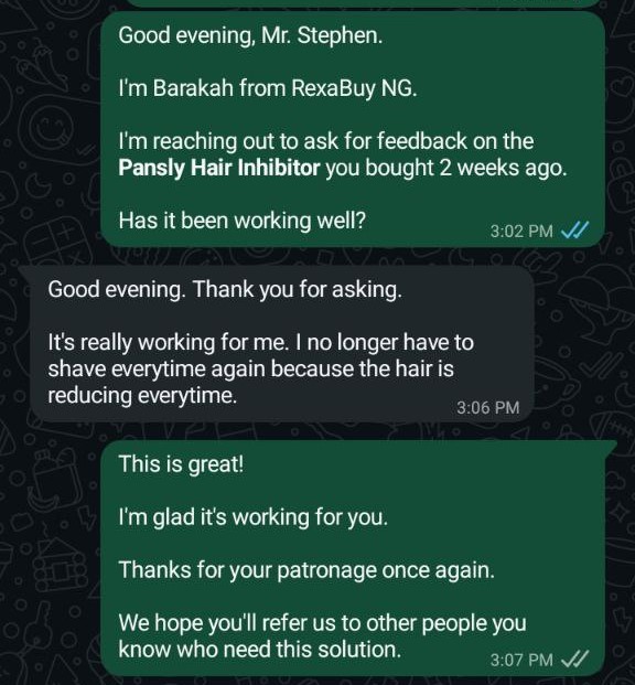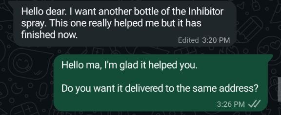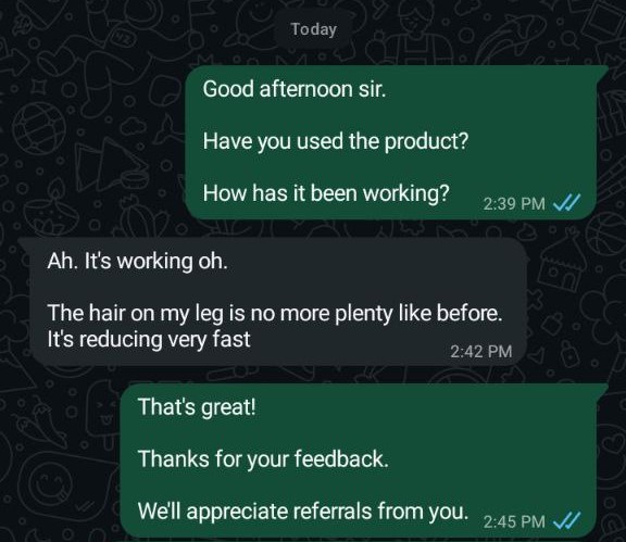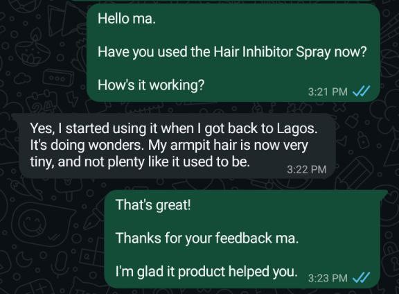 Trusted by 1,500+ Nigerians, this hair inhibitor spray has been proven to reduce hair growth, make hair thinner and finer, and give you smooth, hair-free skin for longer periods.